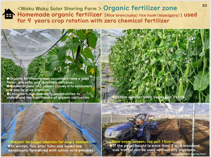 1.この3年ほど夏の異常高温で作物栽培に支障が確実に出始めた。営農型ソーラーは、作物と営農者双方に対して多少なりともその悪影響を緩和している。